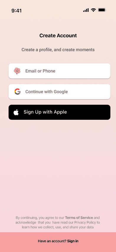 Users quickly sign up with minimal